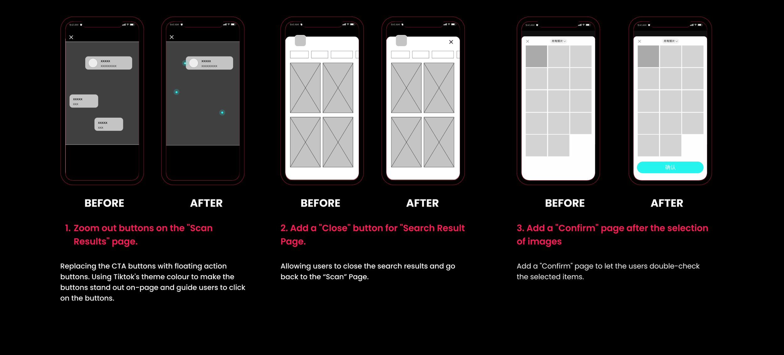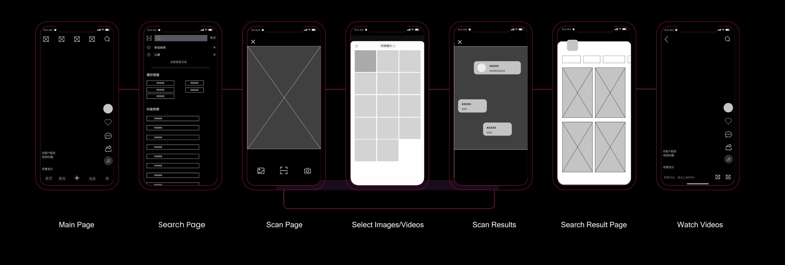 Based on my research and insights, I conducted two brainstorming sessions to come up with possible design solutions. Then I created low-fi wireframes to demonstrate my ideas and conducted 3 speed-dating sessions for the purpose of need validation and ideation. In the end, I decided to add a "scan search" function to Tiktok's search page.