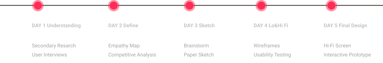 This is a 5-day long design challenge. I owned and involved in every step of the design process, including research, ideation, creating wireframes, usability testing, and designing high-fidelity UIs.